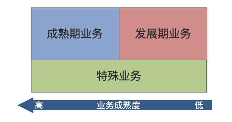 基于上述多元化戰(zhàn)略對(duì)于城投公司的現(xiàn)實(shí)意義,在市場化轉(zhuǎn)型過程中的城投公司采用多元化戰(zhàn)略勢在必行??梢灶A(yù)見轉(zhuǎn)型必然會(huì)帶來一系列問題的出現(xiàn),因此為了對(duì)問題進(jìn)行具體分析,將多元化戰(zhàn)略下城投公司的業(yè)務(wù)由業(yè)務(wù)成熟度入手分為成熟期業(yè)務(wù)、發(fā)展期業(yè)務(wù)、特殊業(yè)務(wù)三種,如圖1所示,并結(jié)合實(shí)際情況對(duì)相應(yīng)的管控問題進(jìn)行分析。